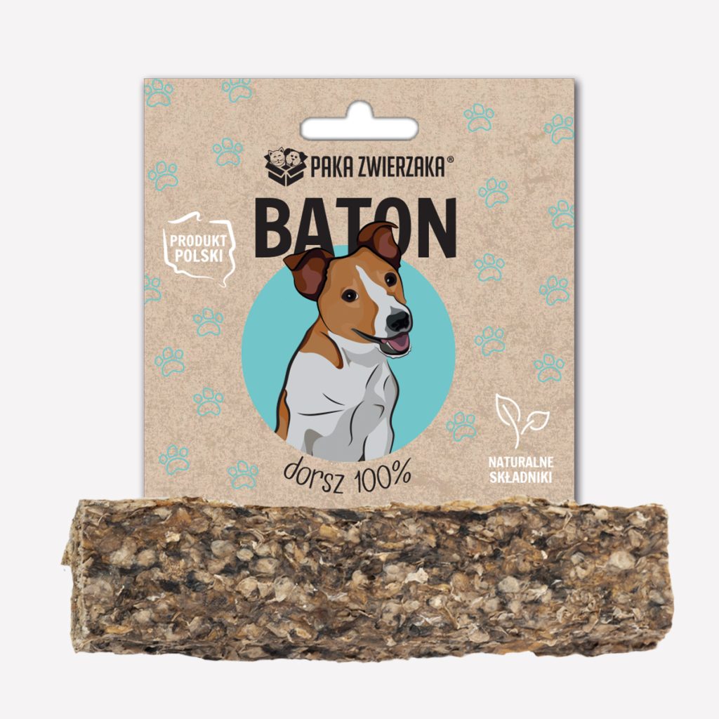 Baton wykonany ręcznie, pozbawiony klejów i barwników. Stworzony tylko z naturalnych składników najwyższej jakości. Bezpieczny dla dziąseł psa, nie zawiera ostrych elementów.