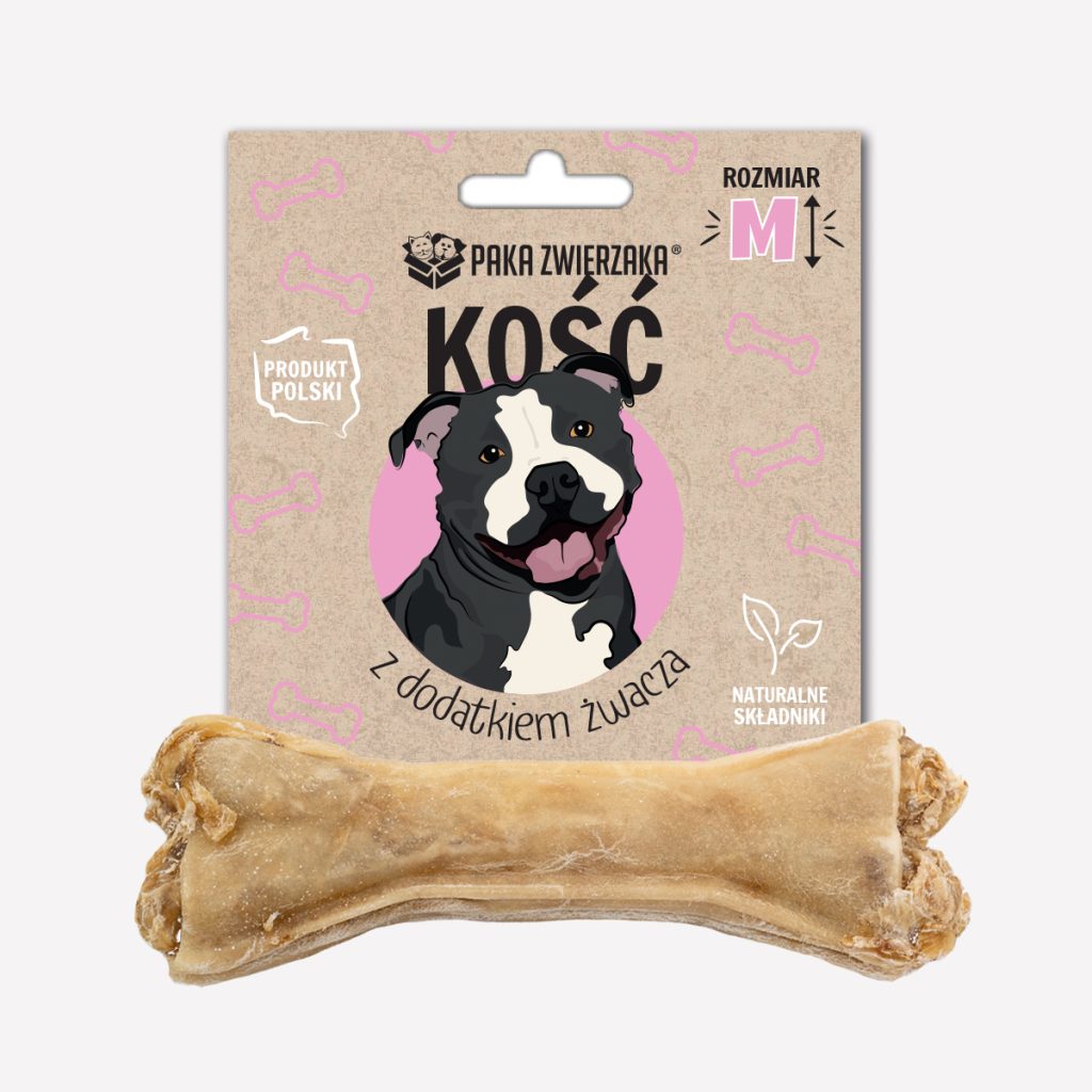 Kość wykonana ręcznie, pozbawiona klejów i barwników. Stworzona tylko z naturalnych składników najwyższej jakości. Bezpieczna dla dziąseł psa, nie zawiera ostrych elementów.