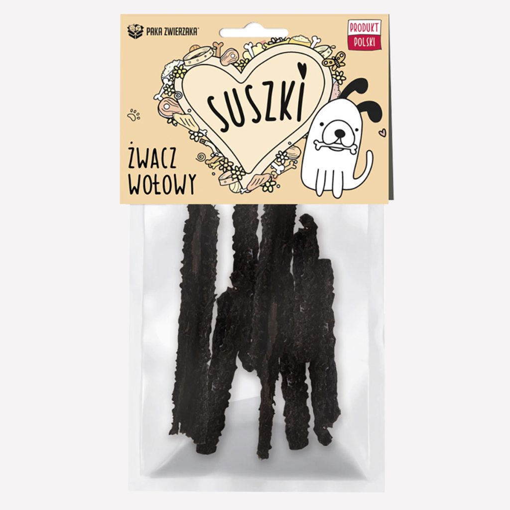 100% naturalny, suszony żwacz wołowy dla psów w każdym wieku, również dla szczeniąt. Gryzaki posiadają naturalny aromat oraz wyjątkowy smak. Staranny i powolny proces suszenia smakołyku zapewnia zachowanie cennych wartości odżywczych. Dzięki metodzie pasteryzacji termicznej wysokiej jakości surowiec wołowy pozbawiony jest bakterii i wirusów, a pies otrzymuje wyłącznie najlepszy produkt.