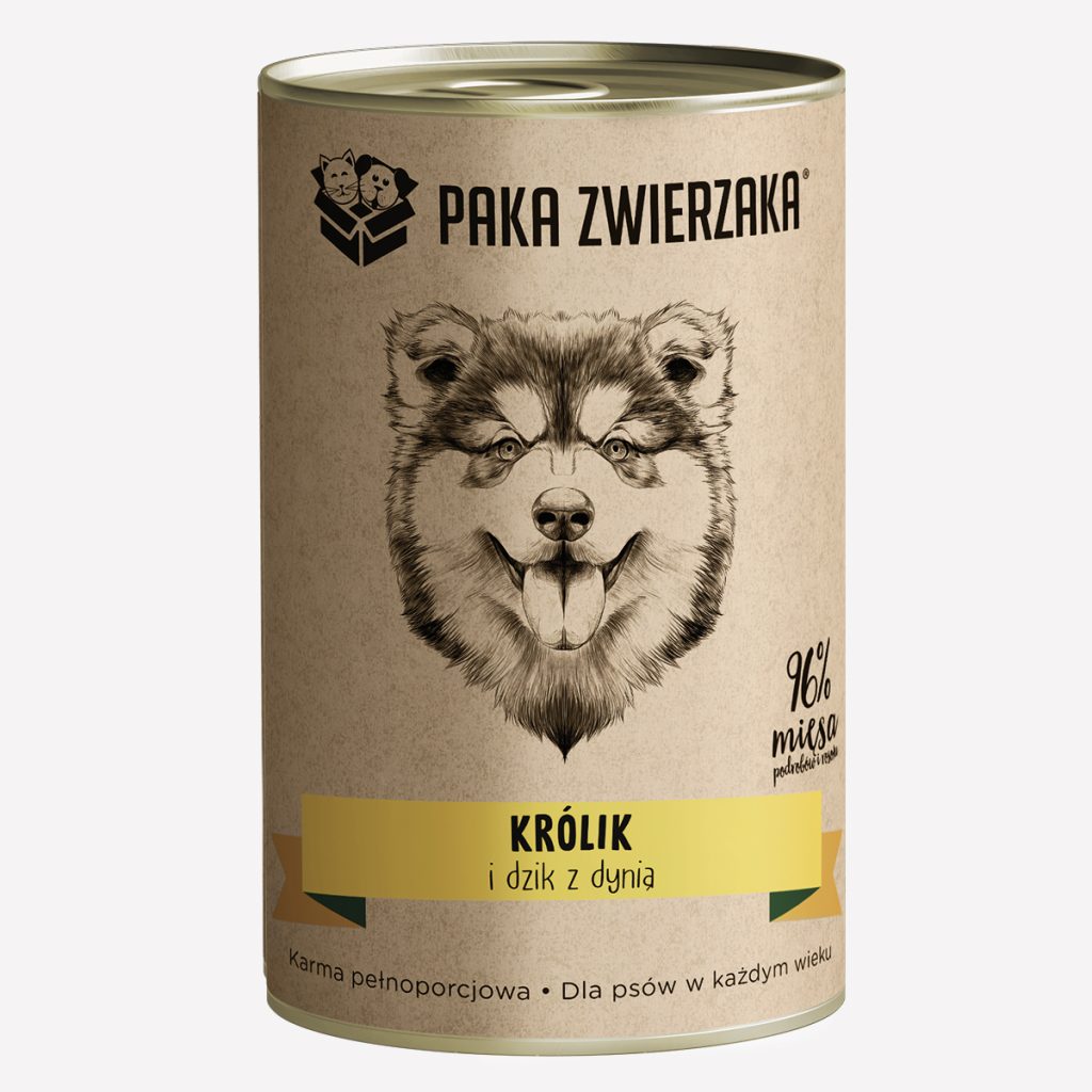 Karma mokra dla psa PAKA ZWIERZAKA królik i dzik z dynią 400 g