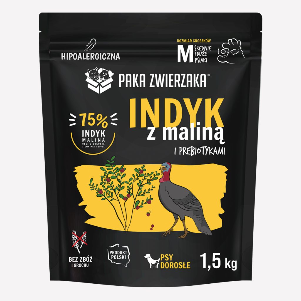 Karma sucha dla psa PAKA ZWIERZAKA indyk z maliną M 1,5 KG