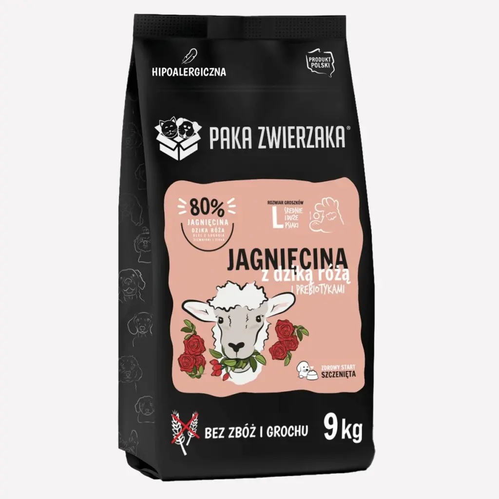 Karma sucha dla psa PAKA ZWIERZAKA jagnięcina i dzika róża PUPPY 9 KG