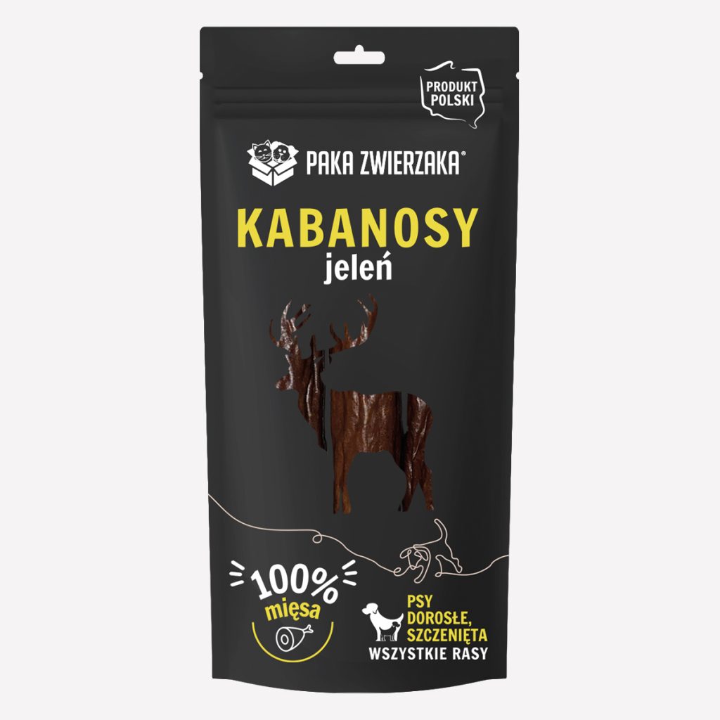 Kruche, smakowite kabanosy wykonane z mięsa jelenia. To doskonałe, 100% naturalne uzupełnienie diety psa każdej wielkości. Dodatek kolagenu wspiera prawidłowe funkcjonowanie układu krwionośnego oraz trawiennego. Suszenie ciepłym powietrzem nadaje im niezwykłej chrupkości i pozwala na zachowanie wszystkich cennych witamin i minerałów. Podczas gryzienia masuje dziąsła, czyści kamień nazębny i zaspokaja potrzebę żucia. Produkt nie zawiera konserwantów, wzmacniaczy smaku, aromatu oraz wypełniaczy.