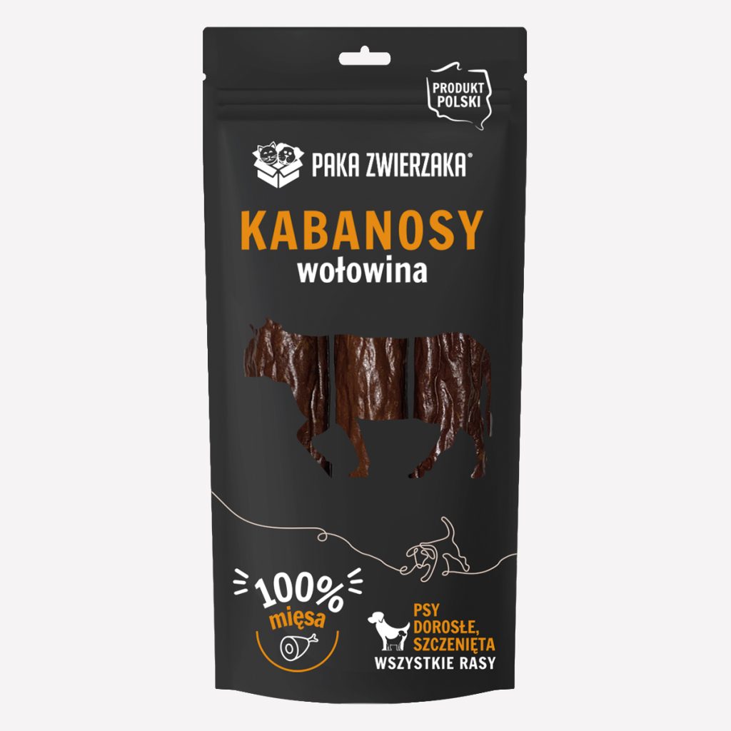 Kruche, smakowite kabanosy wykonane z mięsa wołowego. To doskonałe, 100% naturalne uzupełnienie diety psa każdej wielkości. Dodatek kolagenu wspiera prawidłowe funkcjonowanie układu krwionośnego oraz trawiennego. Suszenie ciepłym powietrzem nadaje im niezwykłej chrupkości i pozwala na zachowanie wszystkich cennych witamin i minerałów. Podczas gryzienia masuje dziąsła, czyści kamień nazębny i zaspokaja potrzebę żucia. Produkt nie zawiera konserwantów, wzmacniaczy smaku, aromatu oraz wypełniaczy.